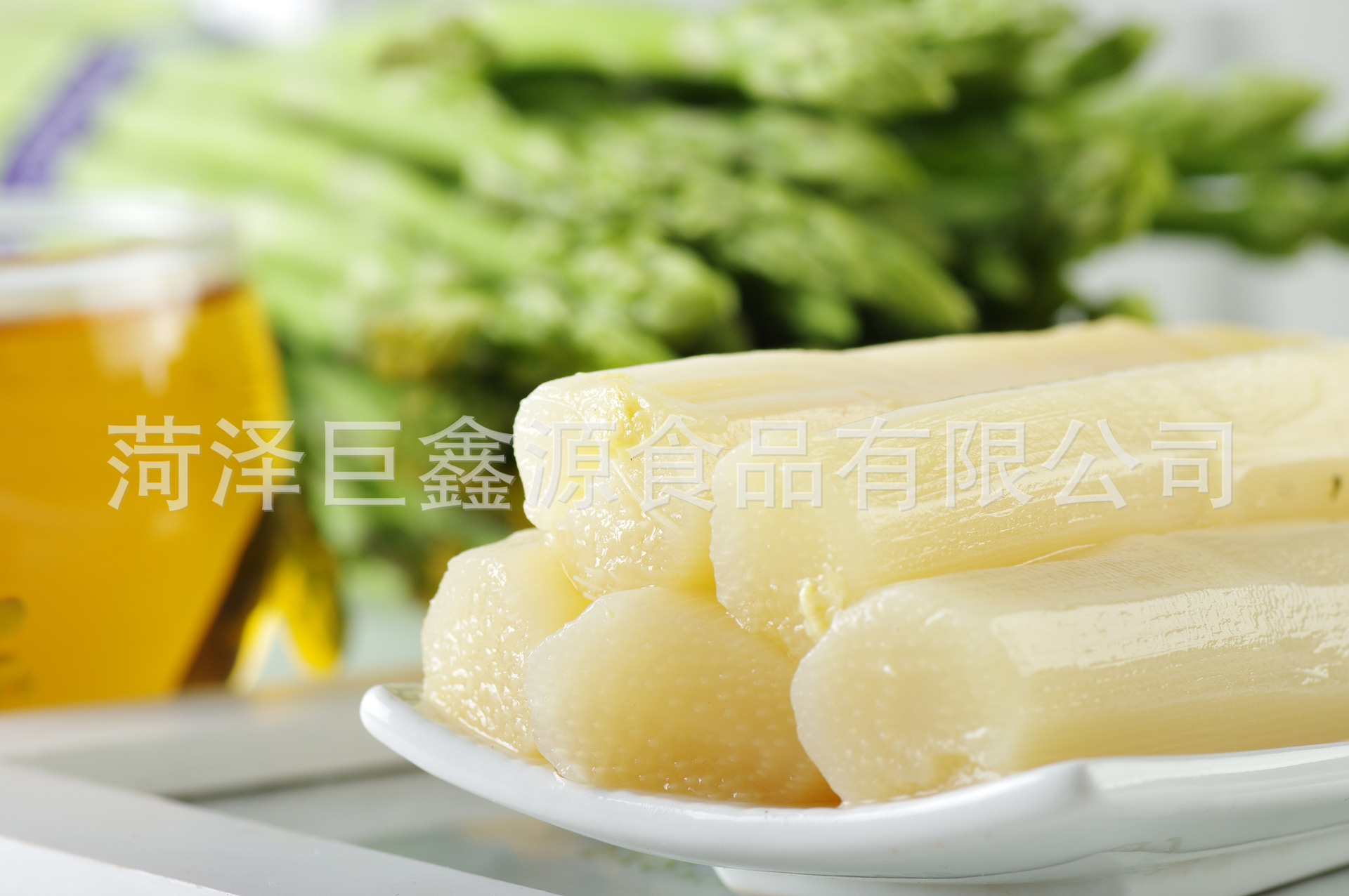 芦笋罐头一种高档的蔬菜罐头,它采用新鲜的芦笋为原料,经高温杀菌罐装于玻璃瓶或铁罐包装中。富含各种人体必须的氨基酸,植物蛋白,矿物质及微量元素,能增强人体的免疫力,现代医学证明,还有抗癌治癌的作用。目前我国的芦笋罐头产量巨居世界首位,产地主要集中在山西的永济、河津,山东的菏泽地区,年产量占世界总产量的四分之三。
