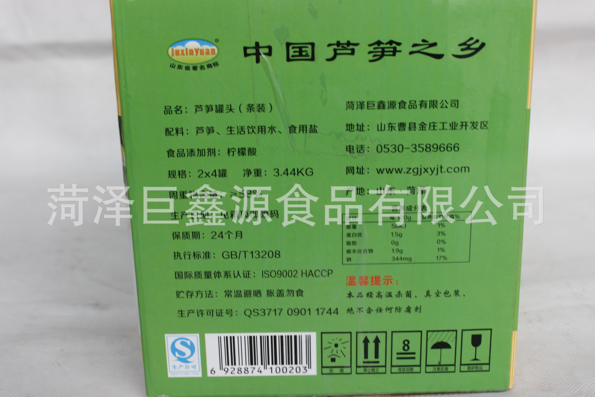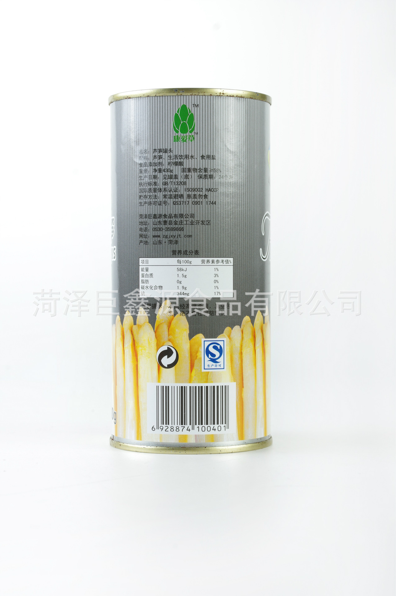 芦笋罐头的口感主要取决于芦笋原料的新鲜程度,越新鲜口感越好、营养流失越小,菏泽巨鑫源食品有限公司是中国大的自营万亩芦笋基地的地头工厂,芦笋从采收到罐头下线仅需2个小时。